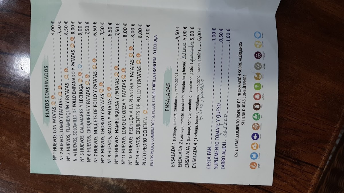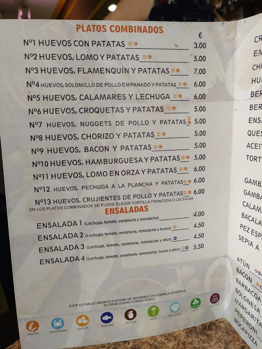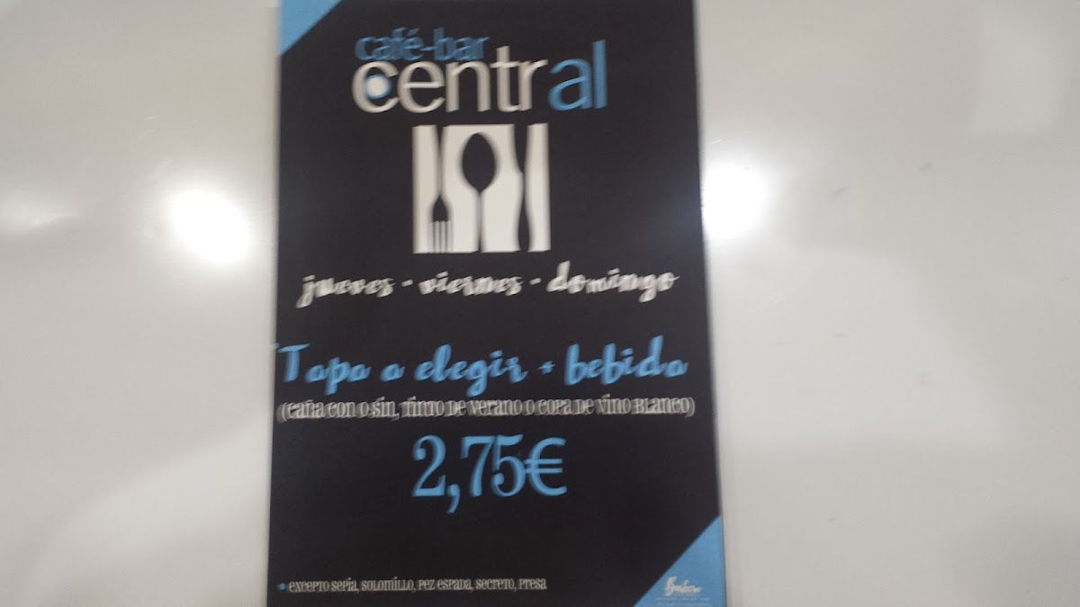 Cafetería Bar Central Menu